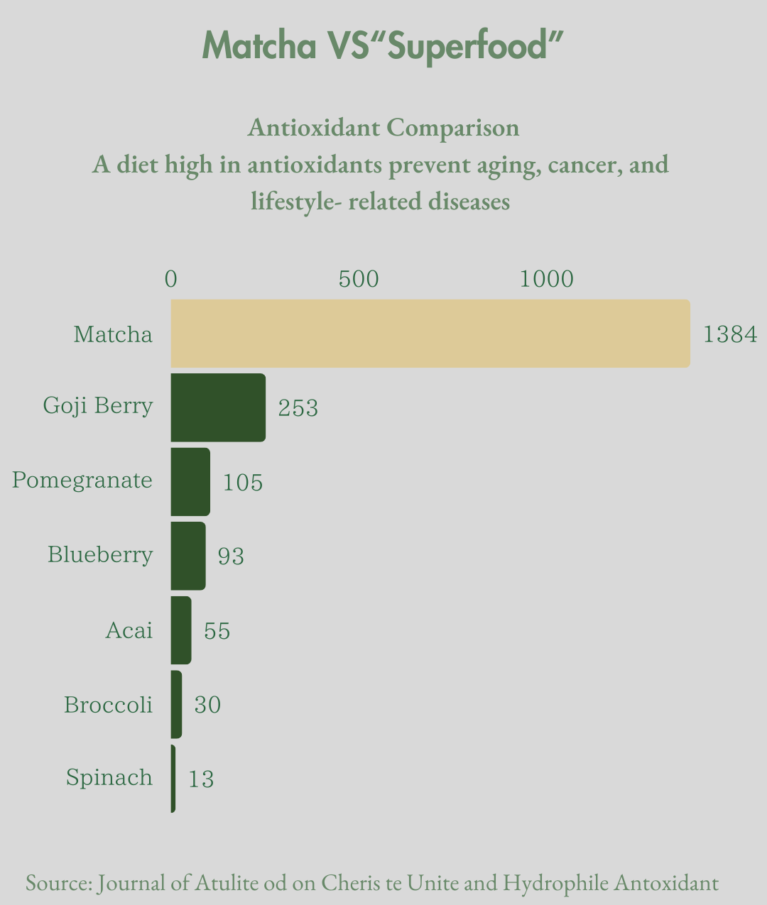الماتشا هو كنز من مضادات الأكسدة مثل الكاتيكين والثيانين وبيتا كاروتين وفيتامين سي وفيتامين إي!! على وجه الخصوص، يعمل فيتامين سي والكاتيكين معًا لتثبيط
